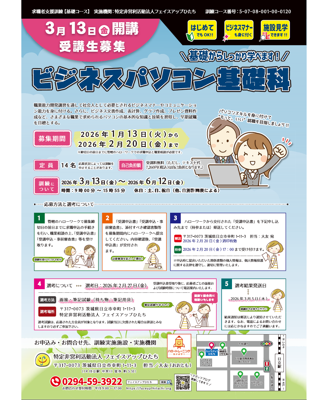 そんな中、昨日から3月13日(金)に開講する「ビジネスパソコン基礎科」の募集が始まりました。さっそく本日、施設見学に来てくださった方もいらっしゃいまして、年が明けて間もない時期ですが、すでに春に向けての準備が始まっているんだなと思うと、気持ちが引き締まります。
